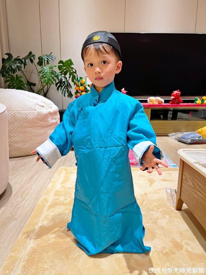 李乘德还晒出了两张奕宏穿唐装的帅照,小家伙多样造型凹禁止,照实比两个哥哥要活跃好多哦。